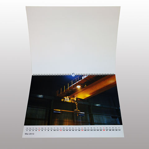 Fotografie von Produktionsmotiven, Bildauswahl, Kalendergestaltung und Satz des Kalendariums